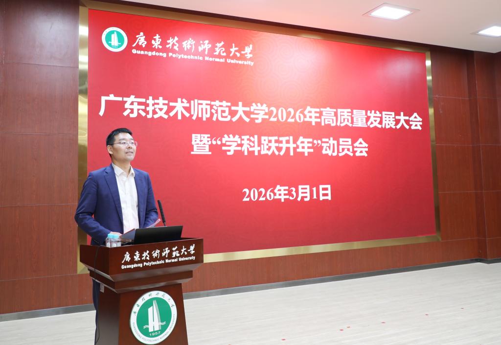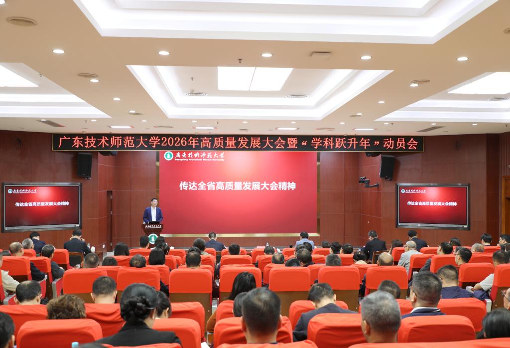 为深入贯彻落实全省高质量发展大会精神,全面部署学校“十五五”开局之年各项工作,3月1日,广东技术师范大学2026年高质量发展大会暨“学科跃升年”动员会在东校区一教208报告厅召开。全体校领导、特邀专家及全体中层干部参加会议。